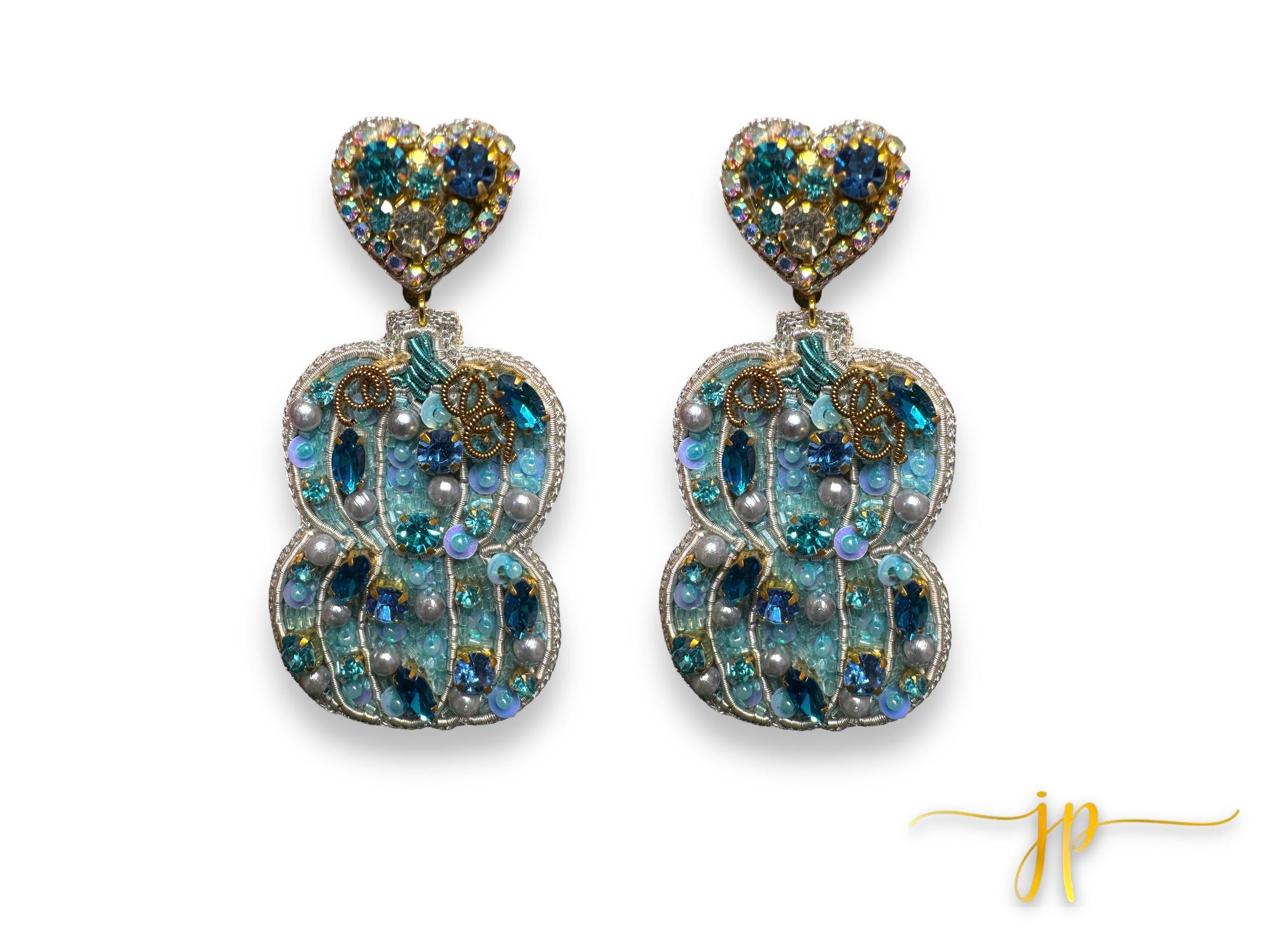 These charming stacked pumpkin earrings feature delicate blue roses and sparkling rhinestones, set in a romantic, coquette inspired design. Topped with a rhinestone heart stud, they’re perfect for adding elegance to your fall wardrobe or any special occasion.