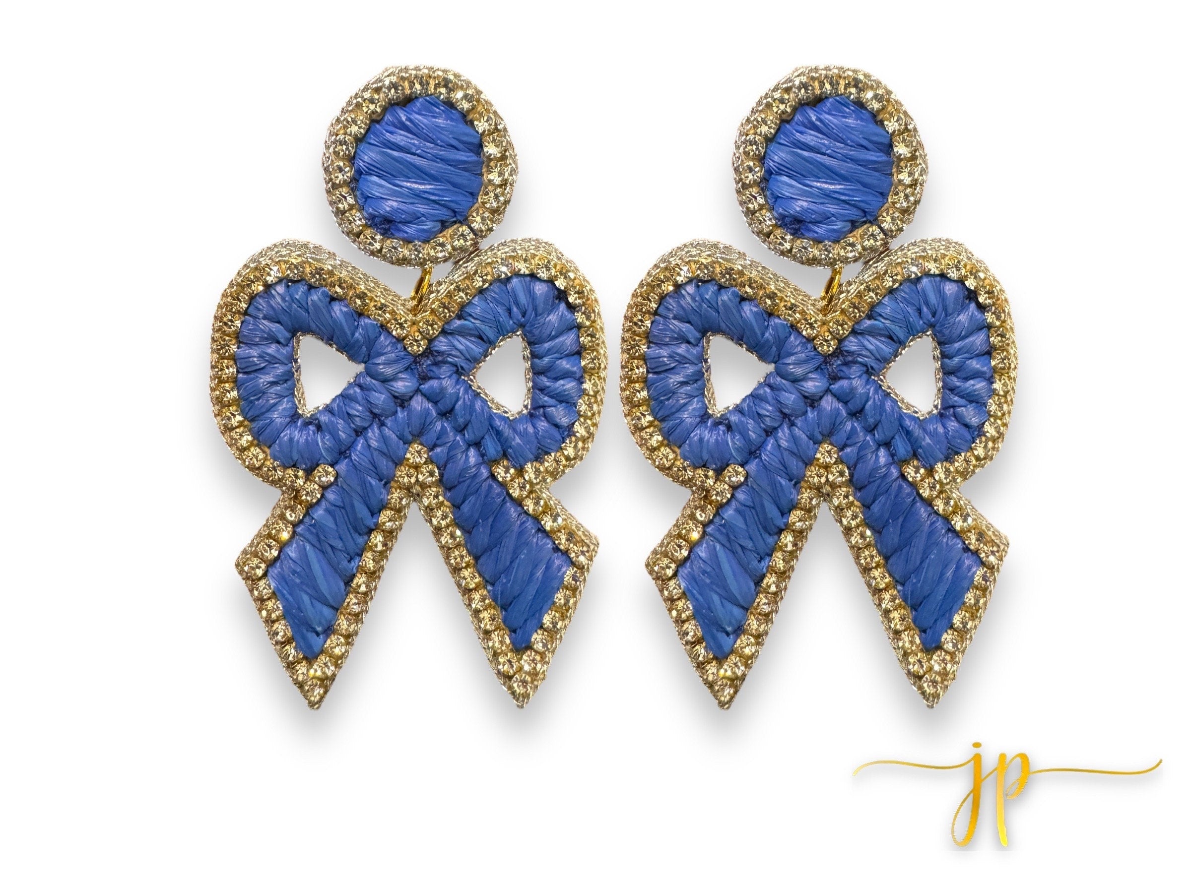 These Elise Blue Coquette Raffia Rhinestone Bow handmade earrings are both flirty and charming!