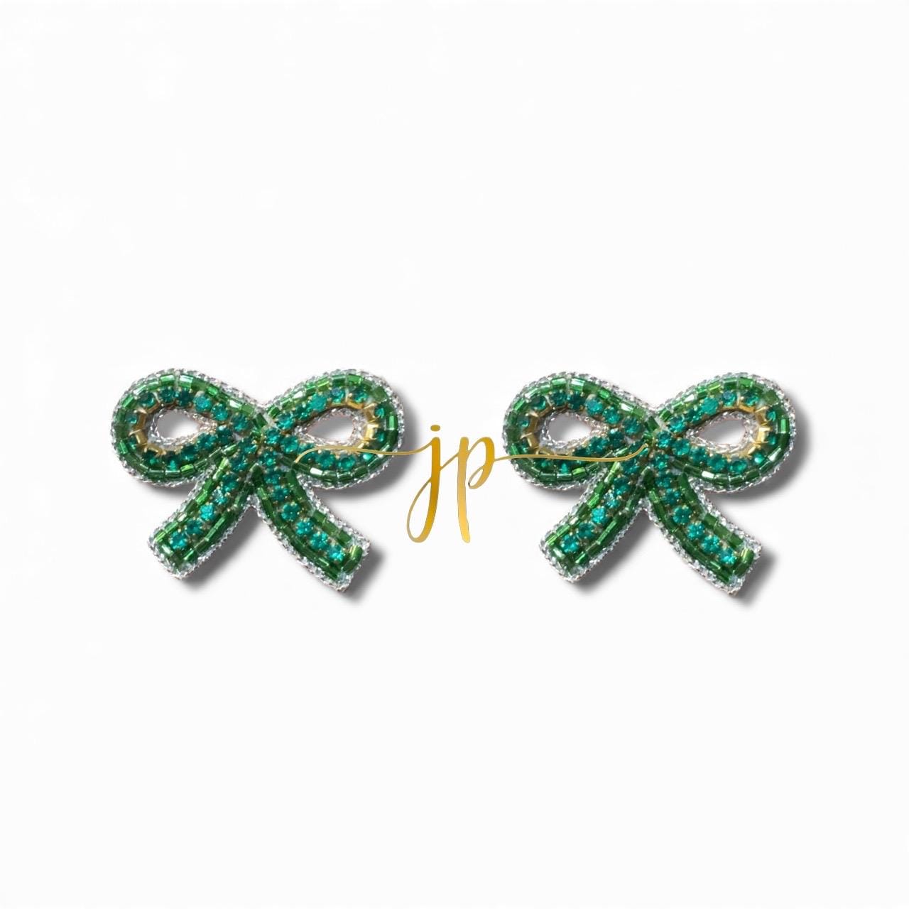 Get ready to sparkle for the holidays in our Green Rhinestone String Bow Beaded Stud Earrings! Part of our Enchanted Evergreen Collection.