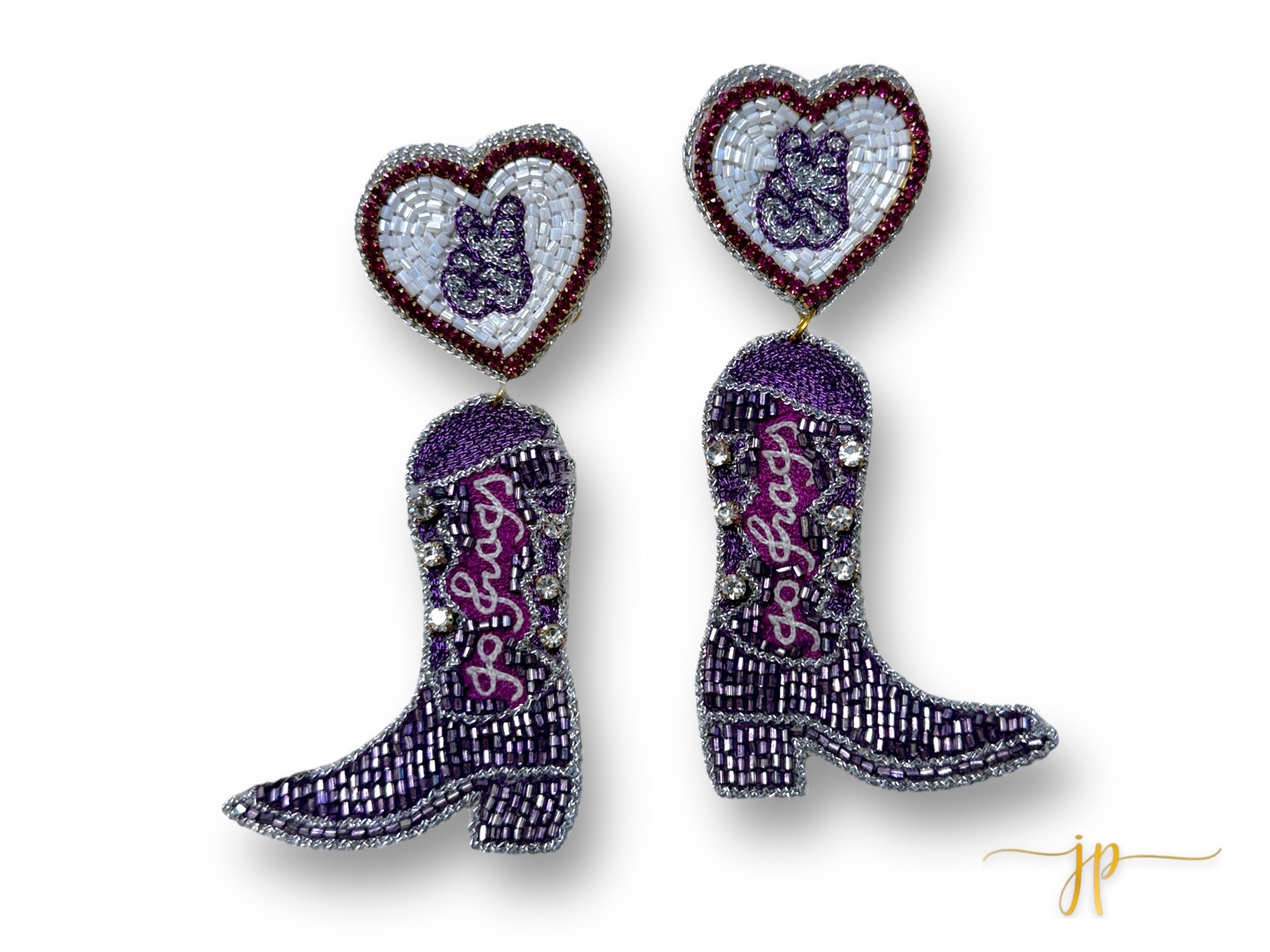 Show your team spirit with these stunning Game Day Go Frogs Beaded Boot Earrings. Designed in vibrant purple and white, these earrings are perfect for cheering on your favorite football team or as a thoughtful gift for college students and fans alike. Part of our exclusive collection, these earrings combine team pride with stylish flair.