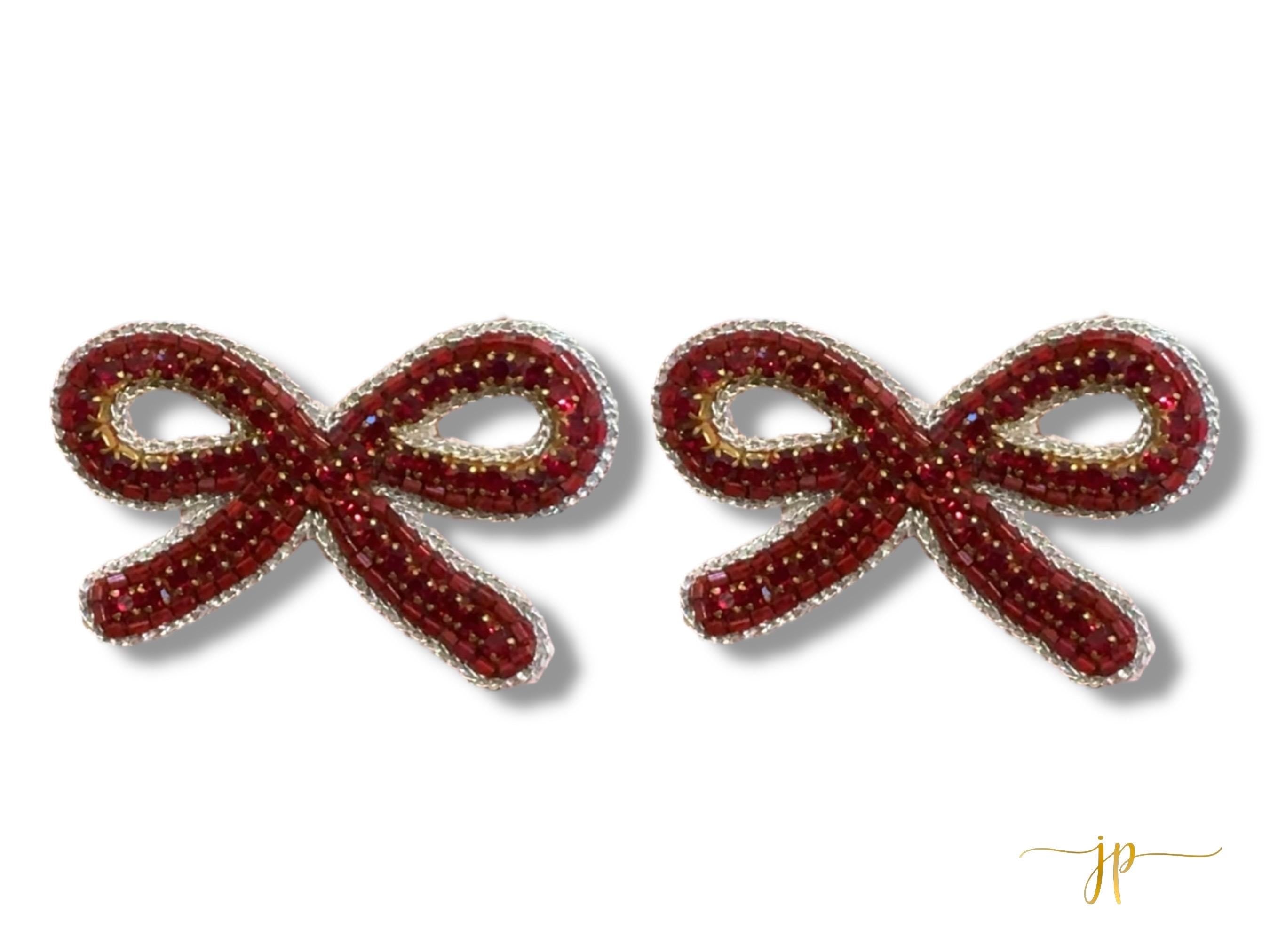 Get ready to sparkle on game day with these stunning Maroon Rhinestone String Bow Beaded Stud Earrings! Perfect for showing off your team spirit!