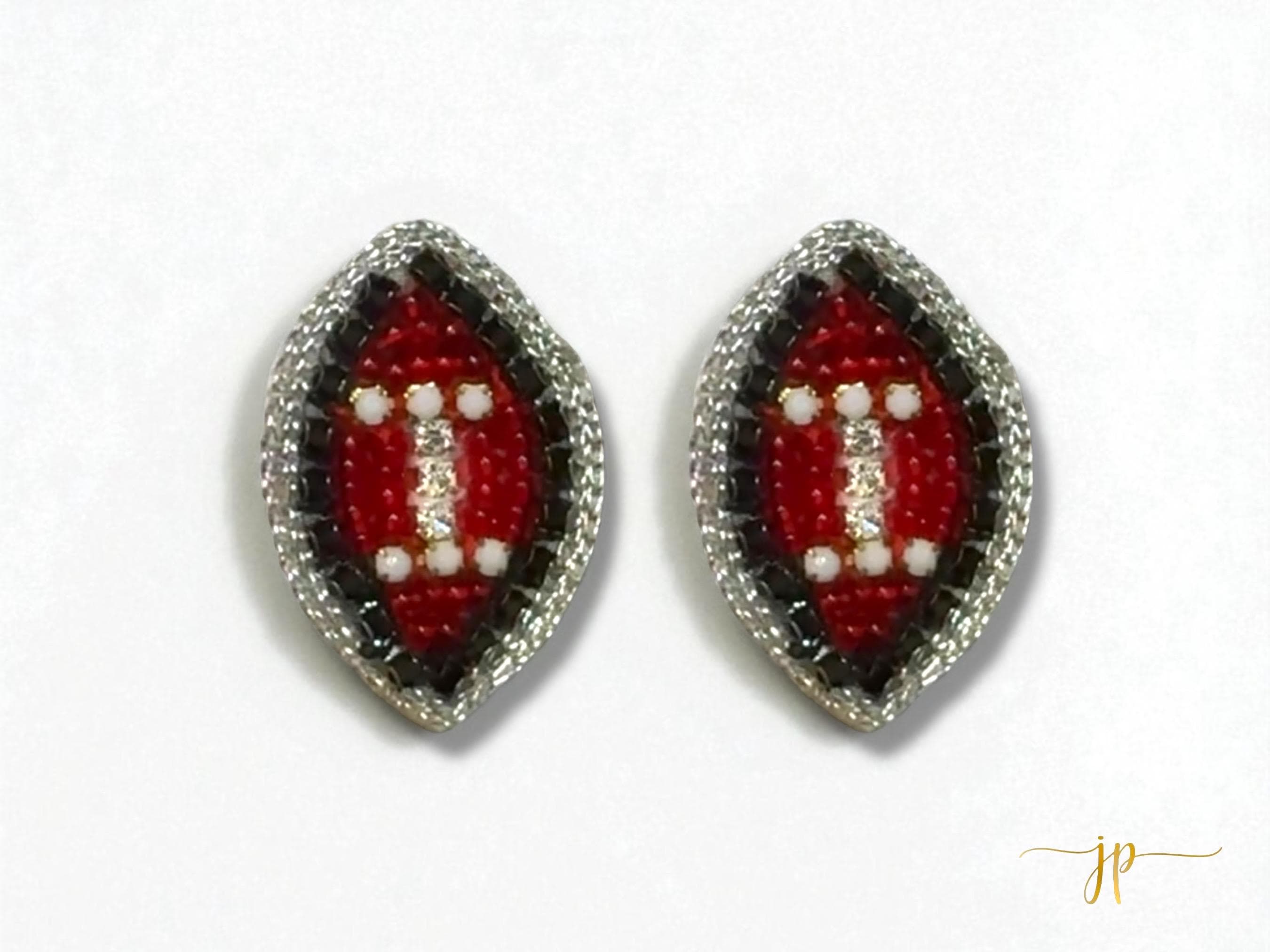Get ready to sparkle on game day with these stunning Red and Black Beaded Rhinestone Football Stud Earrings! Perfect for showing off your team spirit! These are a daintier version of our large beaded rhinestone football earrings.