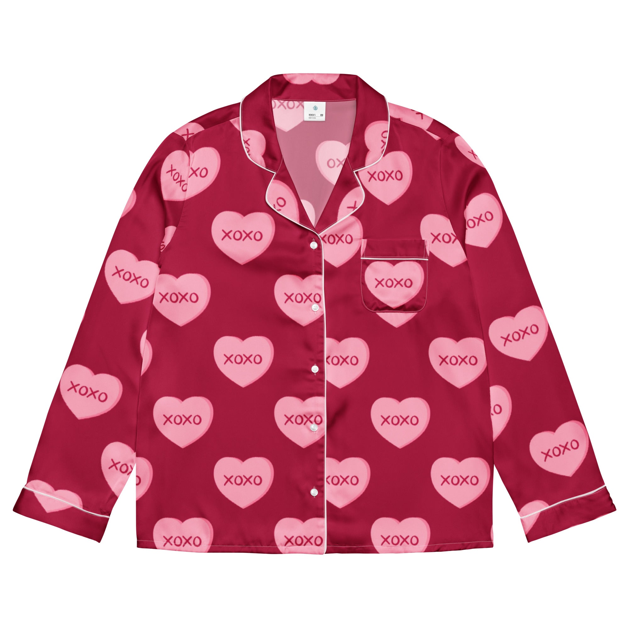 This silky pajama top is ideal for a cozy Valentine’s Day when you want to feel both comfortable and elegant. It features a relaxed fit, chest pocket, and elegant piping detail.